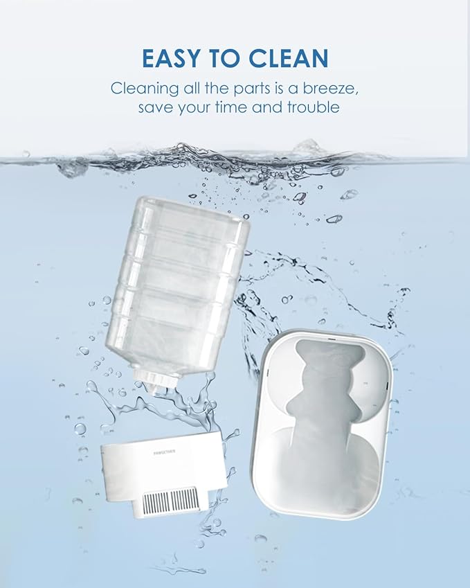 - 𝗖𝗹𝗲𝗮𝗻𝘀 𝗶𝗻 𝟲𝟬 𝗦𝗲𝗰𝗼𝗻𝗱𝘀 - 𝗥𝗲𝗰𝗹𝗮𝗶𝗺 𝗬𝗼𝘂𝗿 𝗧𝗶𝗺𝗲! Simple Design = Effortless Care! Lift, rinse, refill – done! This dog water bowl dispenser has no tiny parts or frustrating assembly. Spend less time cleaning, more time cuddling!