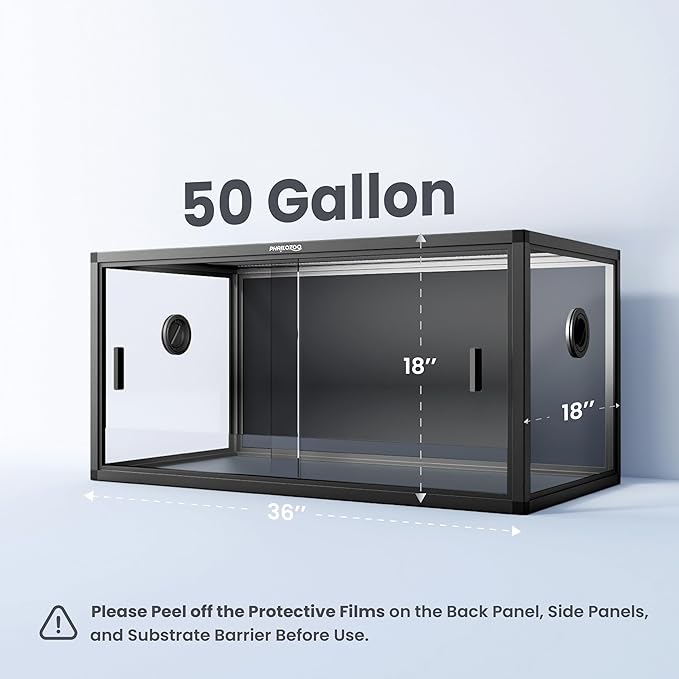 - 【Size Matters】Our stylish and functional 50 gallon reptile tank measures 36''Lx18''Wx18''H. Perfect for bioactive setups, such as gecko tank, juvenile bearded dragon tank, snake enclosure, lizard tank. Spacious playground for your beloved reptiles to explore and thrive while being safe.