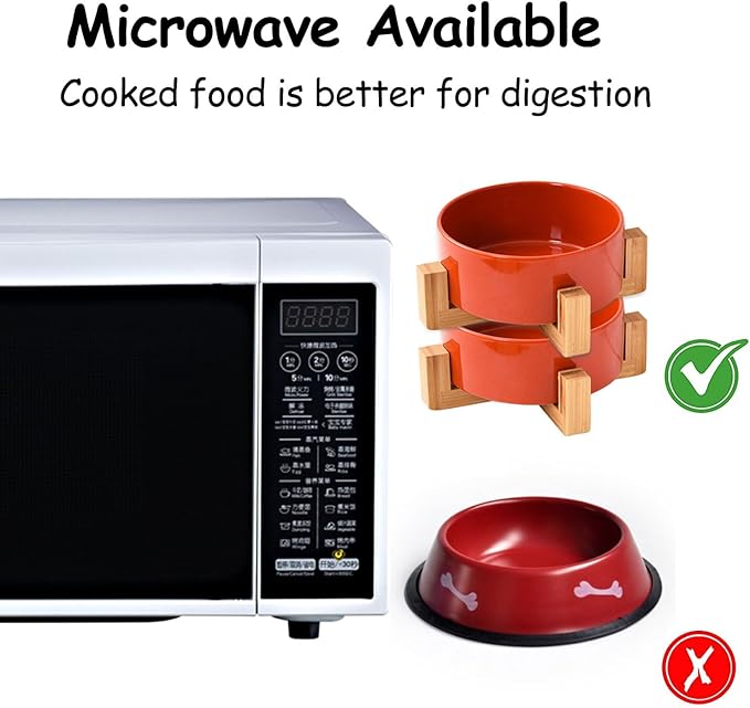 - Small Dog Bowls with Stand : the wooden stand hold on the dog food bowl which makes the bowl is sturdy enough and do not slide easily, even the naughty dog cat can't flip it over, cutting down drastically on making a mess.