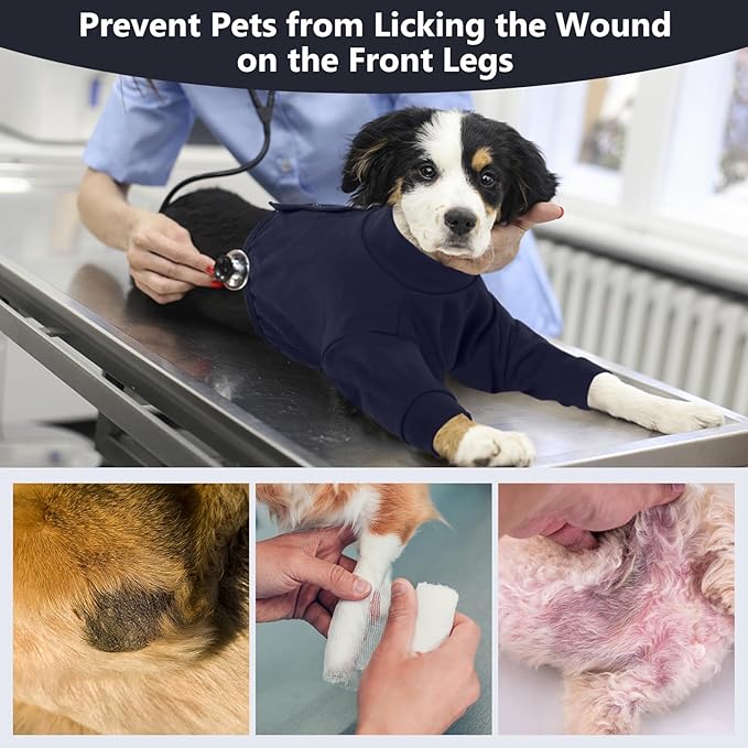 - PROTECT DOG LEGS:The dog recovery suit front legs can prevent pets from licking leg wounds, rashes, hot spots, allergies and infection. The dog sleeve for female and male pet ensures your dog's body balanced and stable, and the recovery suit for dogs prevents any damage to the dog's joints.