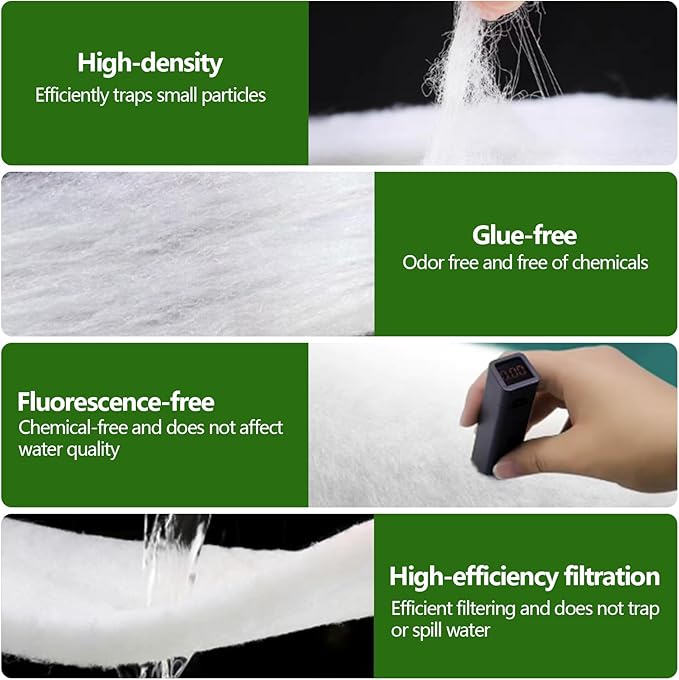 - Say bye to Messy Aquarium:This floss for fish tank works as reliable aquarium filter media, removing debris, waste, and impurities. It helps keep water clear and supports a healthy, stable environment for your aquatic pets