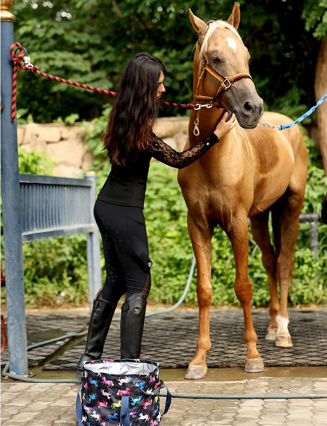 - Portable Water Bucket: The horse grooming set comes with a foldable tote bag that not only neatly stores all the brushes but also doubles as a mobile water bucket. This convenient feature allows for quick cleaning of brushes or your horse, eliminating the need to carry a separate bucket for on-the-go grooming.