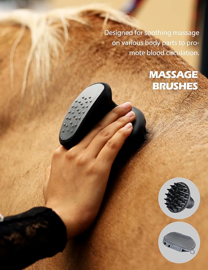 - Durable & Long-Lasting: Made from high-quality materials, the brush set features premium plastic construction with special wear-resistant treatment, ensuring exceptional durability that far surpasses ordinary brushes. These horse brushes effectively remove dirt from the horseβs coat, stimulate blood circulation, and promote natural oil production for a smooth, glossy coat.