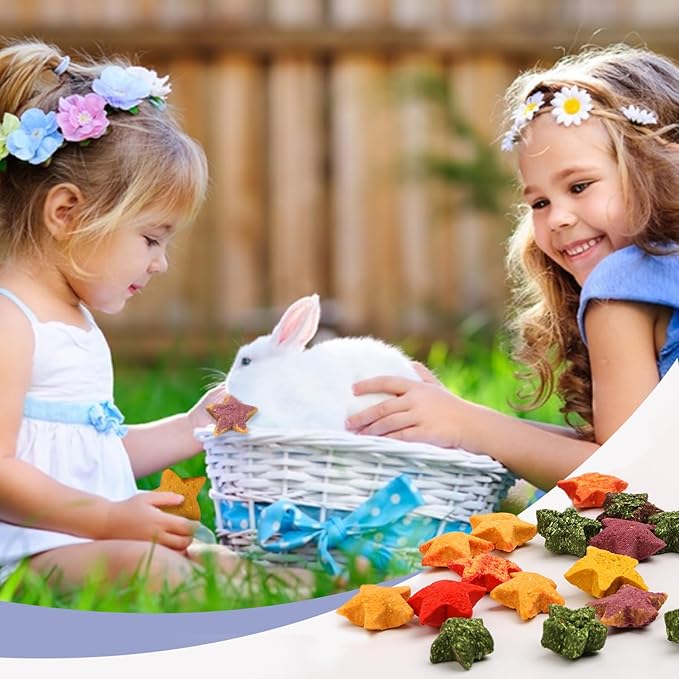 Rabbit Treats, Healthy Bunny Treats Natural Mini Star Shaped Snacks Treats for Pet Rabbits and Small Animals Molar Toys Guinea Pig Hamster Chinchilla Gerbil