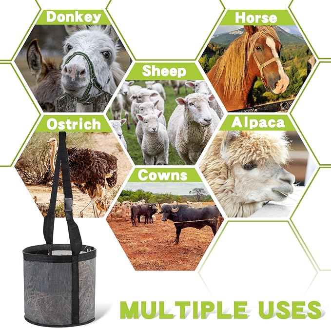 - Portable and Easy to Carry: the mesh feed bucket with adjustable strap is compact and lightweight, portable to carry, folding easily when not in use, suitable for overnight trips, weekend camping, or individual feeding at home
