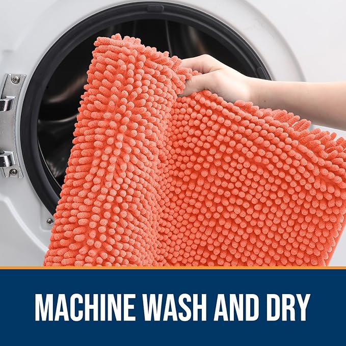 OLANLY Dog Door Mat for Muddy Paws 47x32, Absorbs Moisture and Dirt, Absorbent Non-Slip Washable Doormat, Quick Dry Chenille Mud Mat for Dogs, Entry Indoor Entryway Carpet for Inside Floor, Coral