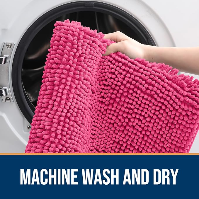 OLANLY Dog Door Mat for Muddy Paws 47x24, Absorbs Moisture and Dirt, Absorbent Non-Slip Washable Doormat, Quick Dry Chenille Mud Mat for Dogs, Entry Indoor Entryway Carpet for Inside Floor, Hot Pink