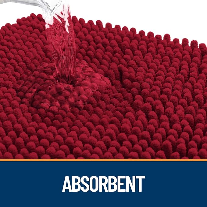 OLANLY Dog Door Mat for Muddy Paws 36x24, Absorbs Moisture and Dirt, Absorbent Non-Slip Washable Doormat, Quick Dry Chenille Mud Mat for Dogs, Entry Indoor Entryway Carpet for Inside Floor, Red