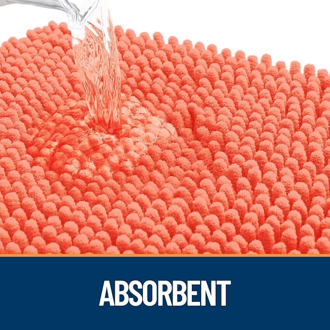OLANLY Dog Door Mat for Muddy Paws 24x16, Absorbs Moisture and Dirt, Absorbent Non-Slip Washable Doormat, Quick Dry Chenille Mud Mat for Dogs, Entry Indoor Entryway Carpet for Inside Floor, Coral