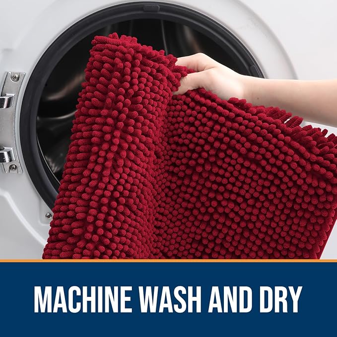 OLANLY Dog Door Mat for Muddy Paws 30x20, Absorbs Moisture and Dirt, Absorbent Non-Slip Washable Doormat, Quick Dry Chenille Mud Mat for Dogs, Entry Indoor Entryway Carpet for Inside Floor, Red