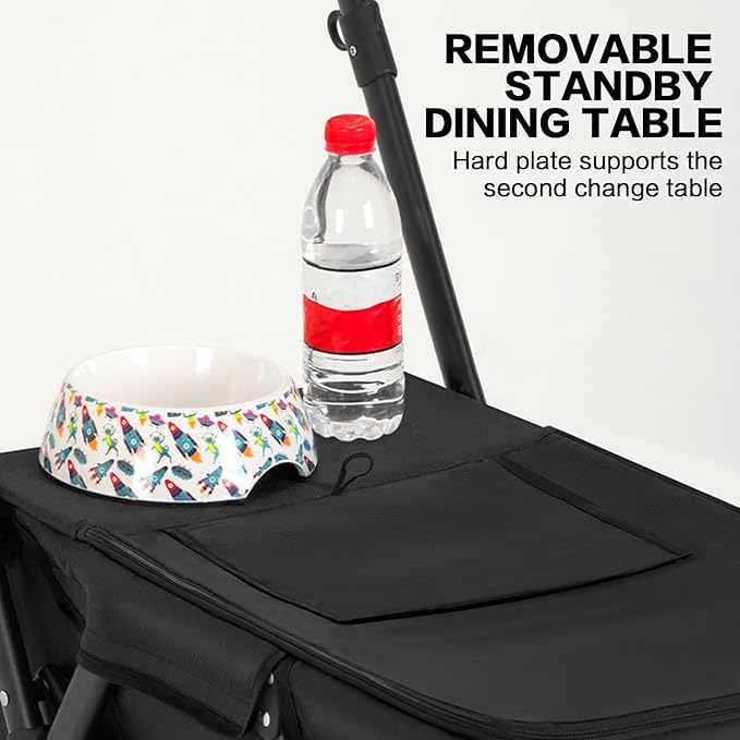- Easy to Fold for Storage:The pet stroller can be folded by pulling the loop buckles on both sides. Easy to carry and store. The storage compartment can also carry pet drinking water and food.