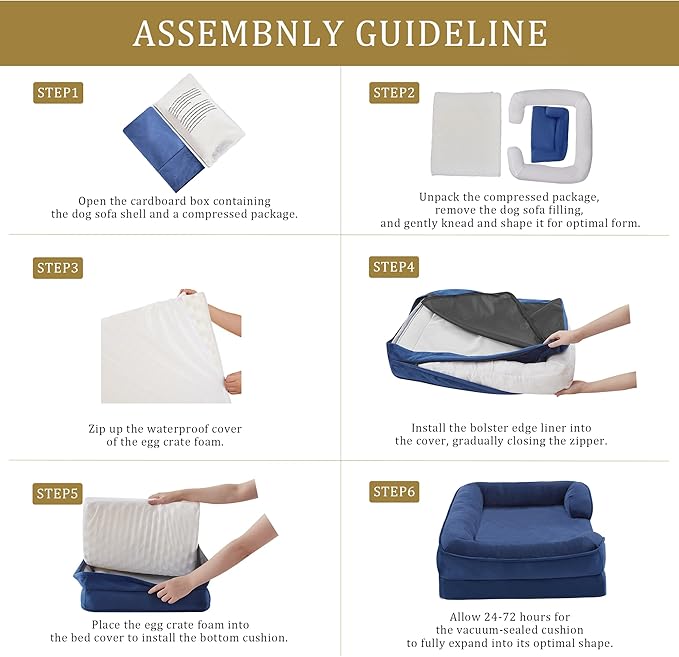 Bedfolks Orthopedic Dog Bed, Waterproof Dog Sofa Bed for Large Dogs, Egg Foam Pet Couch Bed with Removable Washable Cover and Nonslip Bottom, Navy Blue