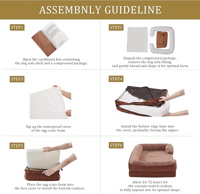 Bedfolks Orthopedic Dog Bed, Waterproof Dog Sofa Bed for Large Dogs, Egg Foam Pet Couch Bed with Removable Washable Cover and Nonslip Bottom, Brown
