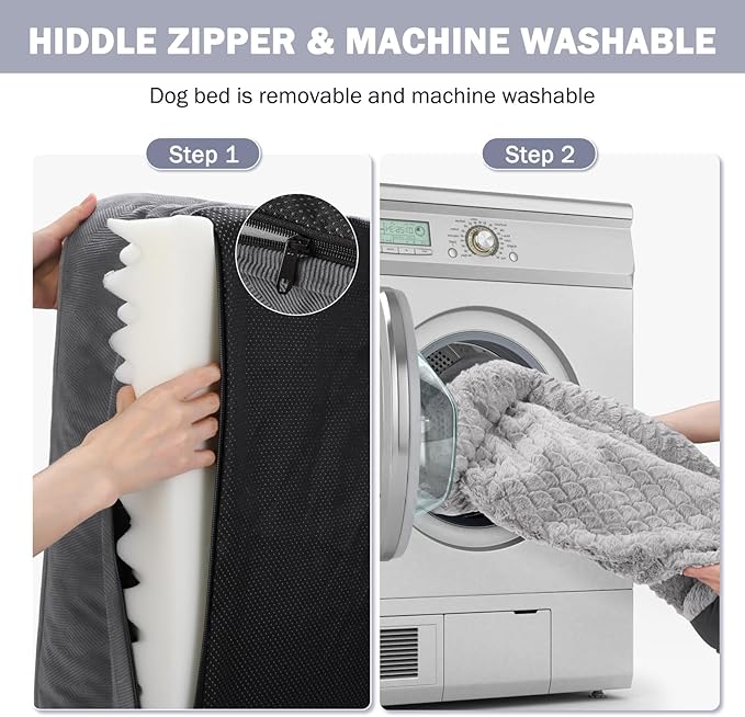 • 🐶WATERPROOF & WASHABLE DOG BED: The dog bed features a removable, machine-washable cover with a zipper for easy to quick remove and care, so just throw it in the washing machine and will be as good as new, ensuring your pet's space stays fresh and hygienic. The waterproof inner lining fully protect the foam from spills, water damage, or accidents, prolonging the product's life.