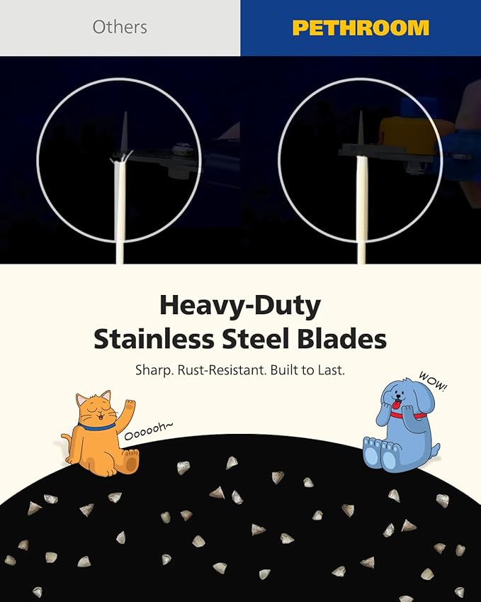 - PROFESSIONAL-QUALITY RESULTS AT HOME: Achieve salon-grade grooming from home comfort. Our sharp, durable stainless steel blades ensure clean, precise cuts every time, giving your pet healthy and polished nails.