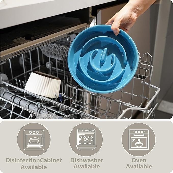 - 【Slow Eater Bowl】Change your dog's fast and excessive eating behavior — Pets that eat quickly tend to get fat and choke, which can make the dog sick. Our innovative slow feeder dog bowl is meticulously crafted to encourage your dog to eat at a slower pace, extending mealtime by 10 times.