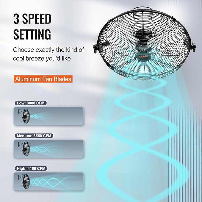 - Adjustable Wall Mounted Fan: Get ready to reach every corner of the room! The 18'' weatherproof wall fan can be tilted vertically for optimum airflow. Get ready for a complete heavy-duty metal construction with aluminum blades for easy disassembly and cleaning.
