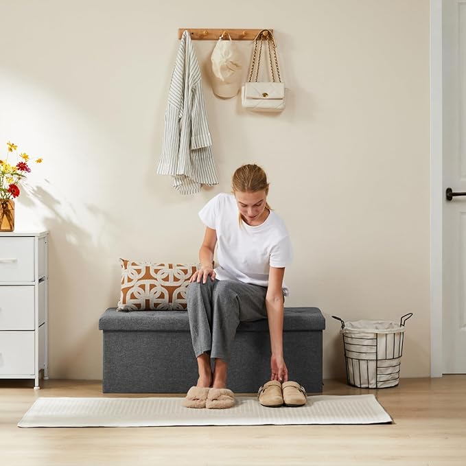 Sweetcrispy 43in Foldable Storage Ottoman, Storage Chest for Bedroom End of Bed, Large Ottoman Bench Foot Rest Stool with Padded Seat for Entryway Living Room, Support 660lbs 154L-Linen Cloth Grey