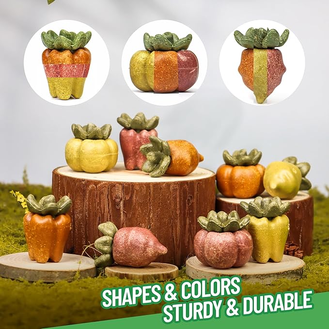 - [ Habitat Enrichment ]: Colorful beet, bell pepper and persimmon shaped chinchilla toys add a fun and decorative element to your pet's habitat