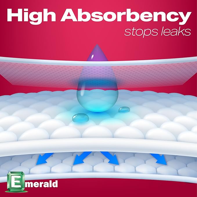 Emerald Incontinence Underpads, 50 Pads, Waterproof Plastic Backing, Highly Absorbent Cotton Fluff, Non-Skid, for Bedwetting, Pets, Seniors