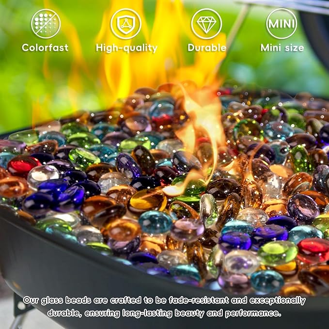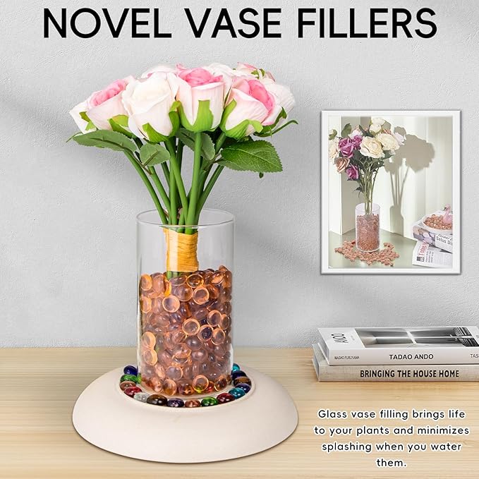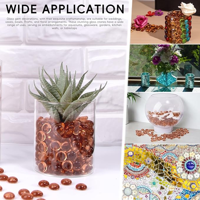 - 【Widely Applied】These flat marbles can serve as vase fillers for centerpieces,decorative accents for pool or landscape bottoms, home décor, photography backdrops, gardens, weddings and parties, fire pit glass rocks, as well as glass beads for crafts.