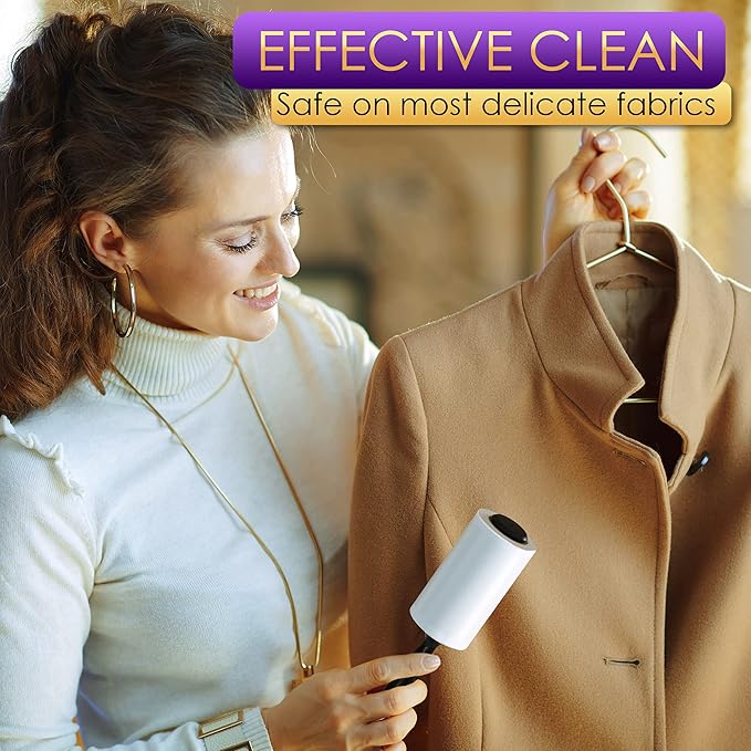 - An upgraded handle for longevity & your convenience. Tired of using sticky rollers for pet hair that have a flimsy handle that cracks after the first attempt to refill it? No more worries, our lint rollers for clothes have reinforced solid handles that are prone to withstand long-term use without any signs of wear. Every handle is designed with your convenience in mind. You’ll be able to effortlessly pick up pet hair, dust, glitter, or other stuff from the surface to keep it neat and tidy.