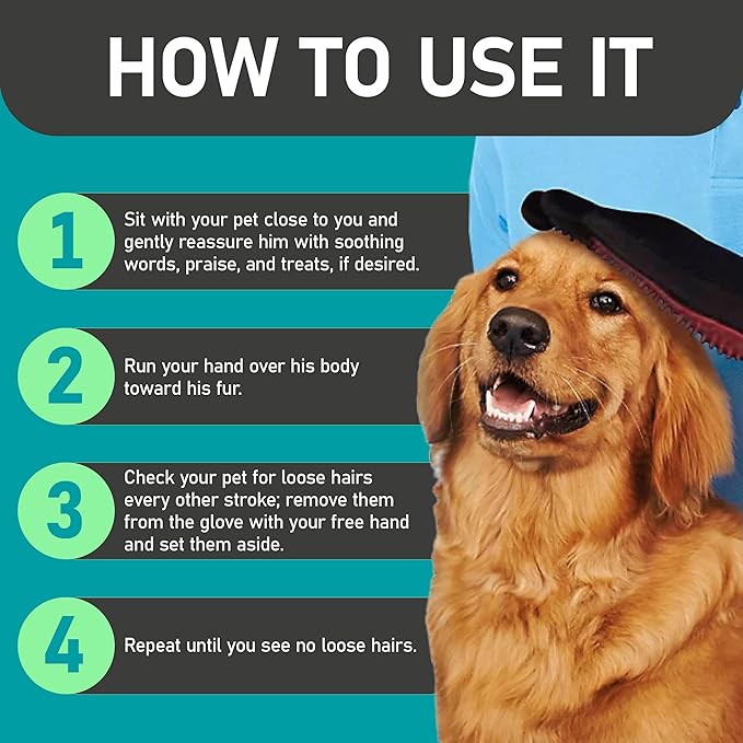 - GROOMING GLOVES FOR DOGS AND CATS: Use them with short, medium, curly, or long coats. Our dog and cat grooming glove can be used daily to keep our pet free of loose hair.