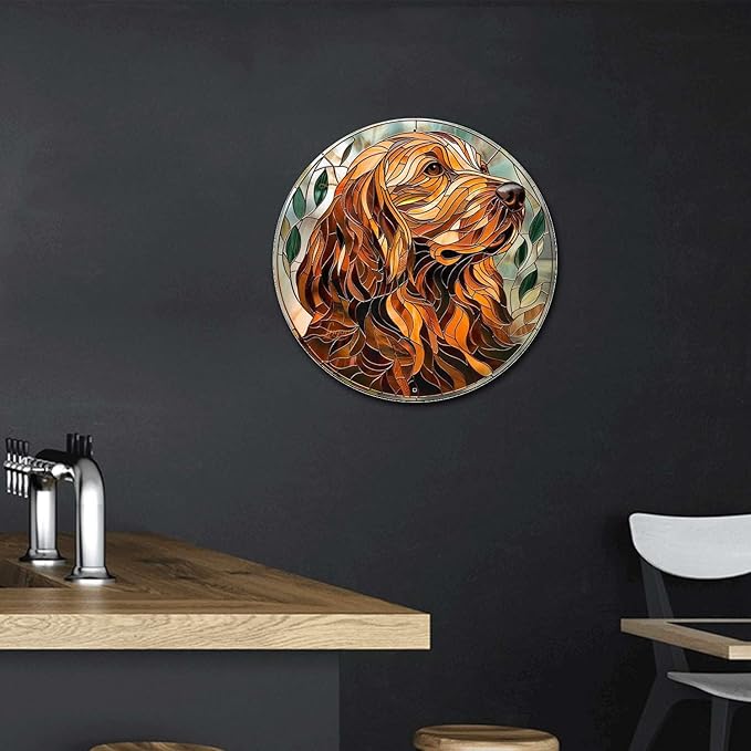 Lygond Metal Sign Tin Sign Circular Stained Glass Dog Outhouse Wall Decor For Pet 8×8 Inches