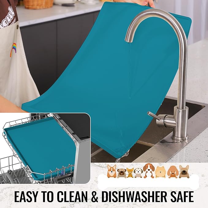 - Easy to Clean & Dishwasher Safe: Our dog bowl mats for food and water, food mat for cat bowls and dog matt for food and water bowl are top-racked dishwasher safe. Wipe pet feeding mats for dog bowls, pet water mat for dog bowl with a wet cloth and then rinse them in the sink with warm soapy water is another way to clean. If there is much water spilled on the pet matt for food and water, please kindly wipe with a dry towel first to avoid water spilling when you take up the dog water mat