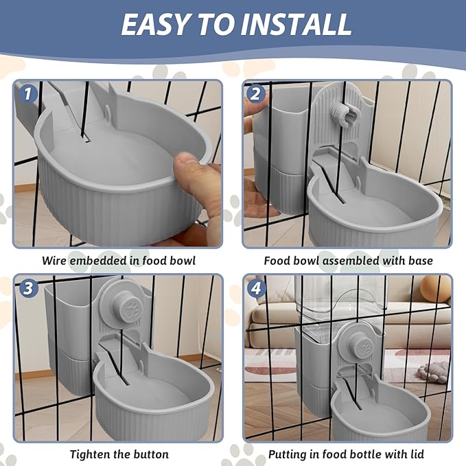 - π° [Easy to Use]: Bunny feeder for cage has a lid on the top for easy refilling of pet food. The water bottle needs to be removed to unscrew the lid to refill. It is recommended to clean it 1-2 times a week to provide your pet with a more hygienic and comfortable eating experience