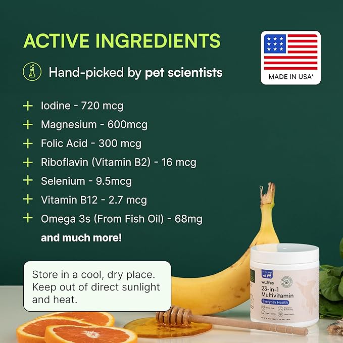 - Bundle & Save: Keep your pups thriving with our Wuffes 23-in-1 Multivitamin bundle. Designed for multi-dog families, this bundle makes it easy to stay stocked up on essential nutrients while saving money. Every pup deserves the best care, and this pack delivers just that.