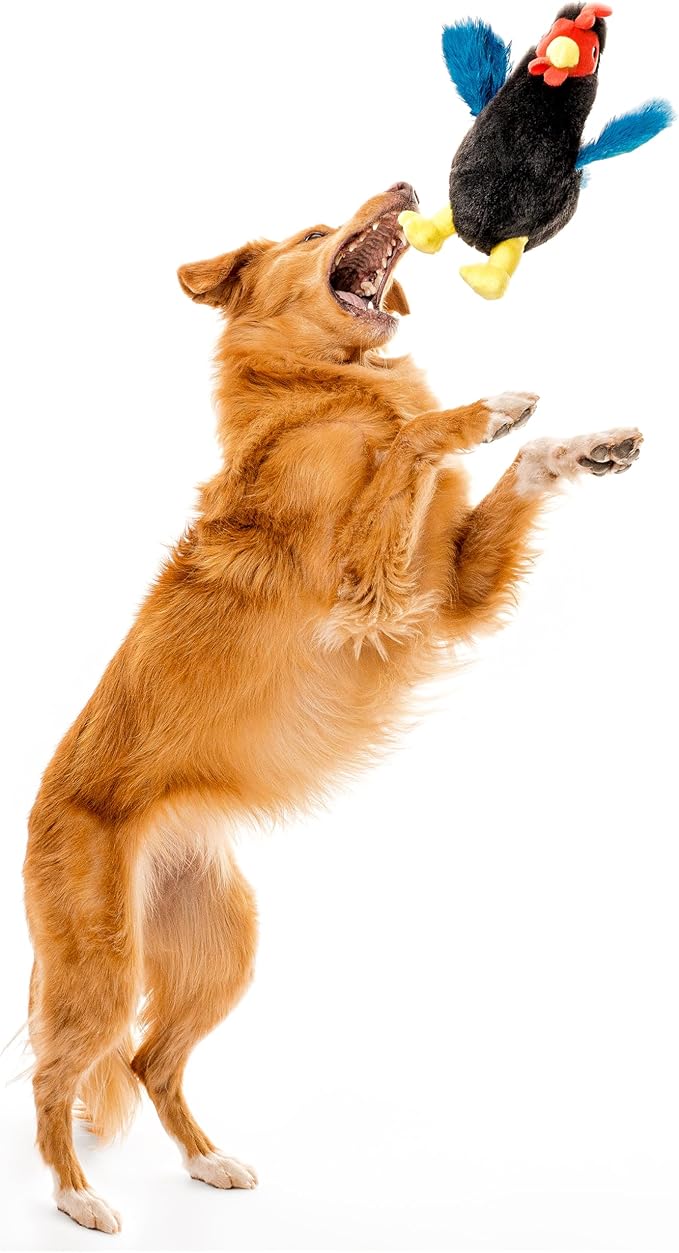 - MEET THE PLUSH HEN: Featuring a clucking giggler sound and all-natural chicken scent, this plush hen is the perfect playtime pal for your dog. Soft yet tough, it's great for squeaky play or cozy snuggles. This toy is perfect for pups up to 50lbs.