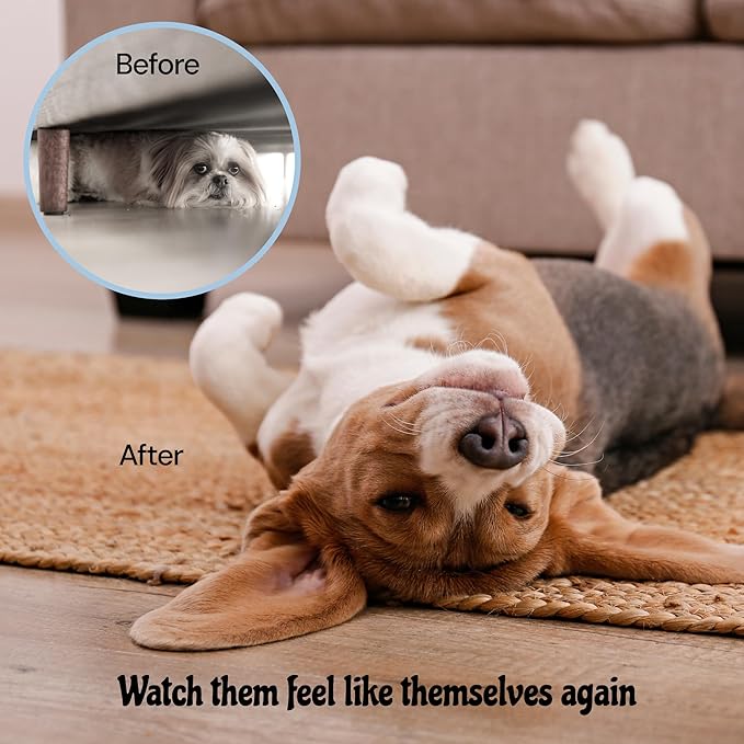 - Feel Confident Leaving Home: Storms, fireworks, car rides, vets & grooming appointments can be big fears for our pets. With our calming dog chews you can leave home with more confidence that you and your pup are prepared to face them head on