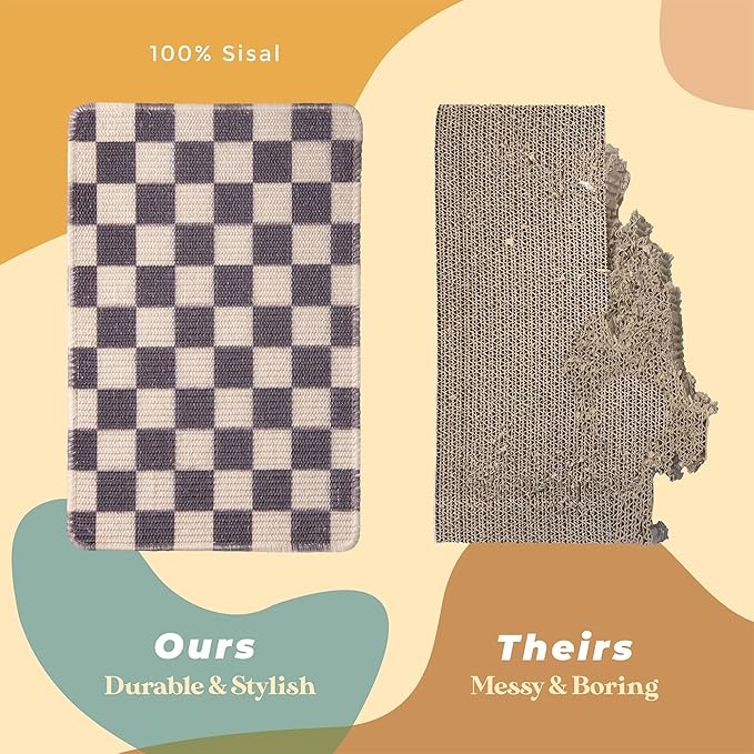 - 🐱 DURABLE - Unlike other Scratchers, Our Scratcher is made with 100% Natural Sisal. Say goodbye to old and shreded scratchers and hello to our Beautiful Scratcher that will elevate your home decor while keeping your cat Entertained.