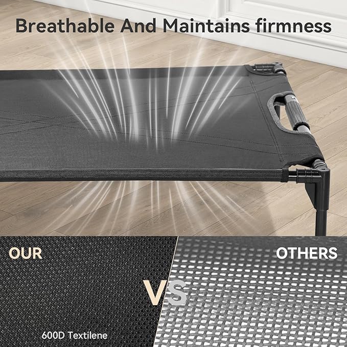 - 【Durable & Washable Material】: Constructed with a durable Teslin fabric supported by robust nylon straps, our raised dog bed is designed for longevity. It offers excellent ventilation, facilitating easy maintenance while resisting wear from sagging and chewing, ensuring a clean, comfortable bed for your dog.