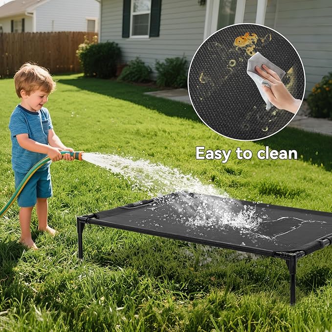 - 【Elevated for Optimal Comfort】: Promote better health for your furry friend with our elevated dog bed, standing 9 inches off the ground for enhanced airflow. Perfect for pets up to 80 lbs, the 48" bed size offers an easy-to-clean space beneath and makes your pet feel secure, boosting their sense of well-being.
