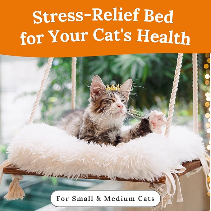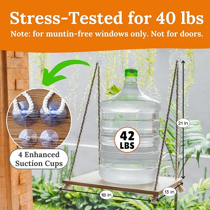 - Strong & Sturdy Frame: Built with a solid pine wood board and thick cotton ropes, and enhanced with 4 strong suction cups capable of supporting up to 40 lbs, our cat window seat guarantees durability and a security while your feline friend enjoys the view.
