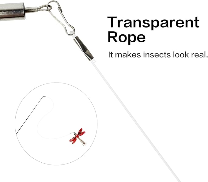- 【Creative design】The shape of feather toys is insects: Dragonflies and Grasshoppers, they make cats full of curiosity. Swing the feather "bait" to get the cat excited, trigger the "hunting instinct", let them run and jump like wild animals, and make your cat go crazy with joy!