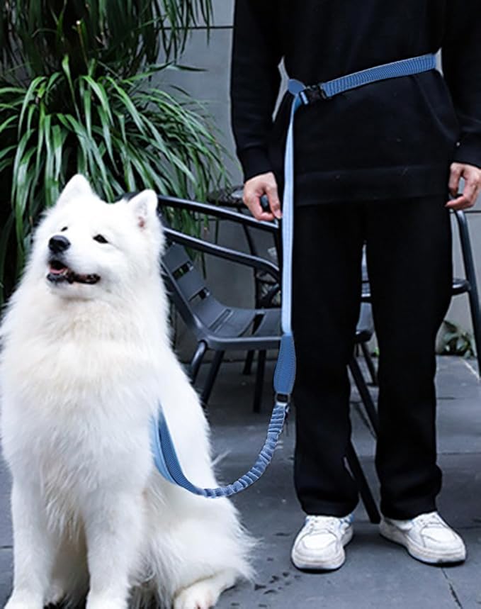 Hands Free Dog Leash for Large Medium Dogs Heavy Duty Bungee Reflective Adjustable Waist Leashes for Walking Running with Car Buckle 4-6FT (Blue)