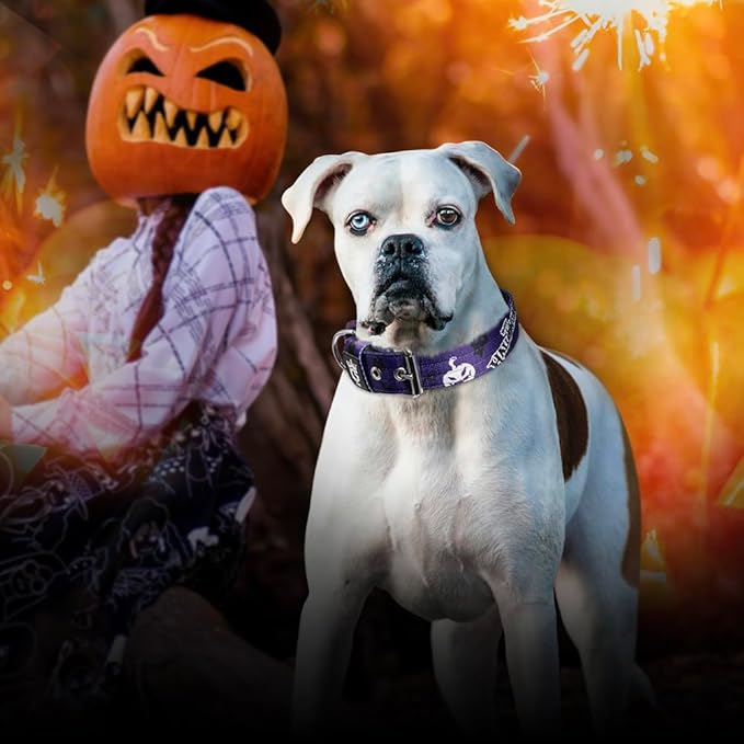 TSPRO Tactical Dog Collar 1.25 Inch Wide Thick Dog Collars with Heavy Duty Metal Buckle, Durable, Strong, Adjustable for Small Dogs (Halloween Purple S)