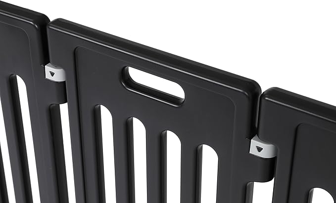 - DIMENSIONS AND MATERIALS: Standing at 25.6 inches high, the playpen is made of strong, durable plastic. The 12-panel design offers ample space for pets to play, while the neutral black color blends seamlessly with any home dΓ©cor. Ideal for small to medium pets.