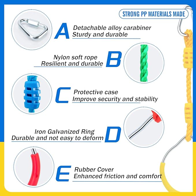 - Durable and Safe Construction: Our Ninja Warrior Obstacle Course Attachments are built to last, crafted from weather-resistant PE material and high-strength, anti-rust treated steel that can support up to 260 lbs. Designed to withstand even the most intense training sessions, these ninja obstacle accessories ensure long-lasting durability and safety. Reinforced components and non-slip grips provide yours with a secure, stable experience, meeting stringent safety standards for worry-free workouts