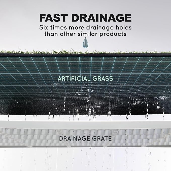 - URINE DRAINAGS QUICKLY AND LESS STINK : With 6 times more drainage holes on grass, the urine will be drained much more quickly to the pee pads than similar products, in order to reduce urine stink