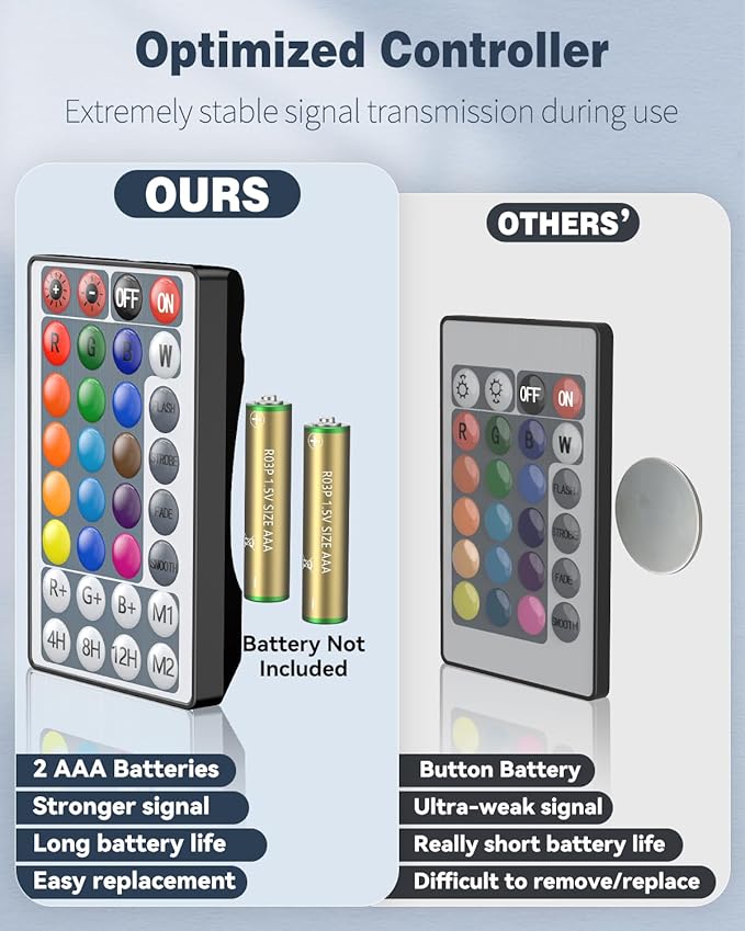 - Enchanting Background Light: Experience illumination and visual pleasure with the aquarium LED light. It creates mesmerizing underwater scenes when lighting up your fish tank. NOTE: Be Sure To Point The Remote Control Towards The Infrared Sensor Light When Using. The remote control is powered by 2 AAA batteries (Not Included).