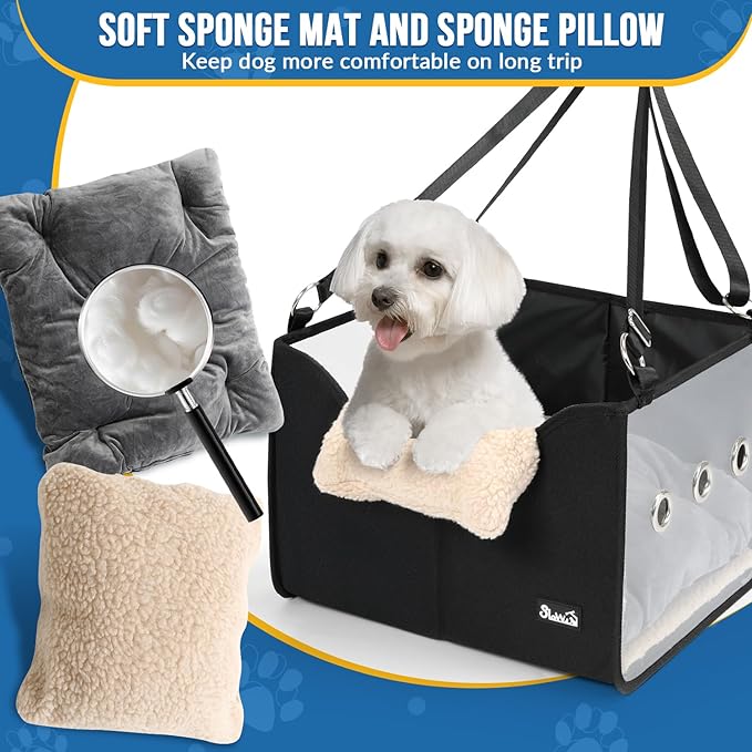 SlowTon Dog Car Seat for Small Dogs - Elevated Portable Dog Booster Seat Under 18 lbs, Pet Dog Travel Carrier with Clear Side Panel, Safety Belt and Soft Cushion
