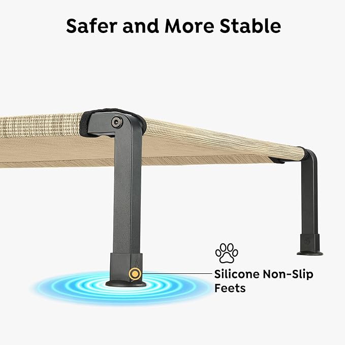 - Enhanced Durability: One Piece Tubing Sturdy Design resists bending, and the heavy-duty frame is thicker than other normal beds, ensuring lasting durability. With anti-slidding silicon feet, this elevated pet bed offers superior stability, making it a safe and reliable choice for even the most active pets.