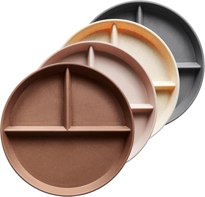 - Greenandlife 9 INCH PREMIUM DIVIDED PLATES: Our reusable plate set including: 9 Inch Compartment Plates x 4 (Apricot, Dusty Pink, Coffee, Charcoal Gray). The unique earth tone dishes make your dining table look more elegant. Stackable design and light weight make it easy to store and carry. They are not only suitable for home and kitchen use, but also convenient for RVs, camping, traveling, picnics, parties, dorms, schools and offices