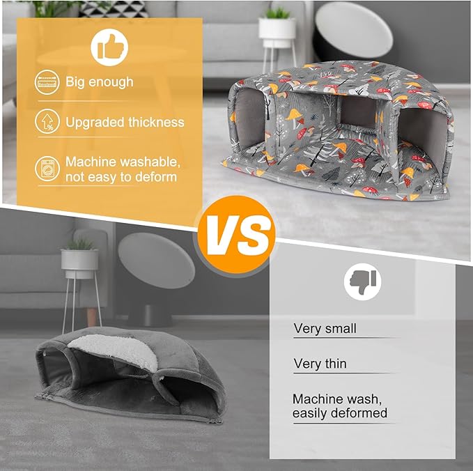 - Machine Washable: The guinea pig hideout is made of short plush and high-density elastic sponge; Not only is it very soft to the touch, but also more comfortable and warm, the fabric is thick enough to hold its shape and stay upright after many washes