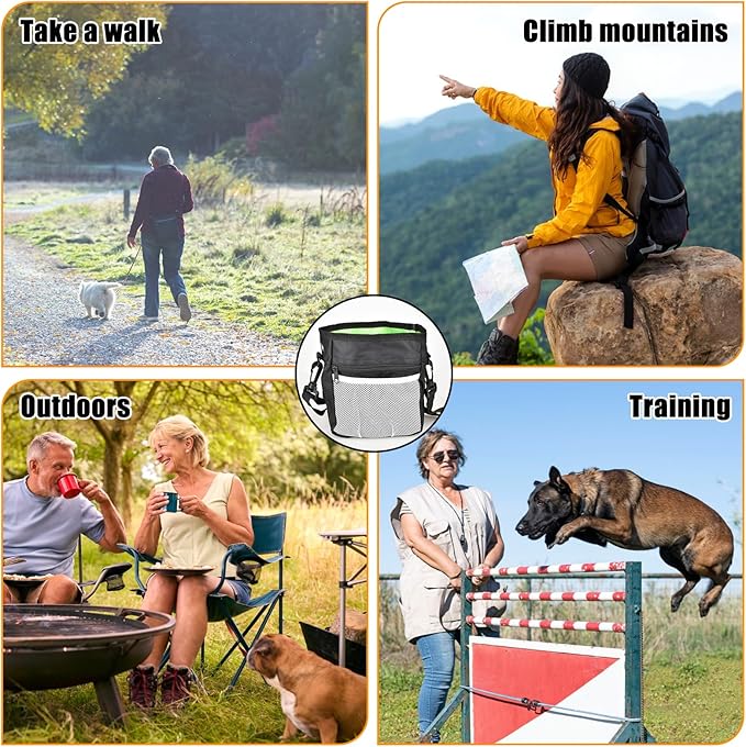 - Dog Treat Pouch Set: The set includes 1 multipurpose dog training bag, 1 collapsible dog bowl, 1 dog training clicker, 1 waist strap and 1 shoulder strap. Suitable for training dogs, walking dogs, traveling with dogs, playing with dogs, etc