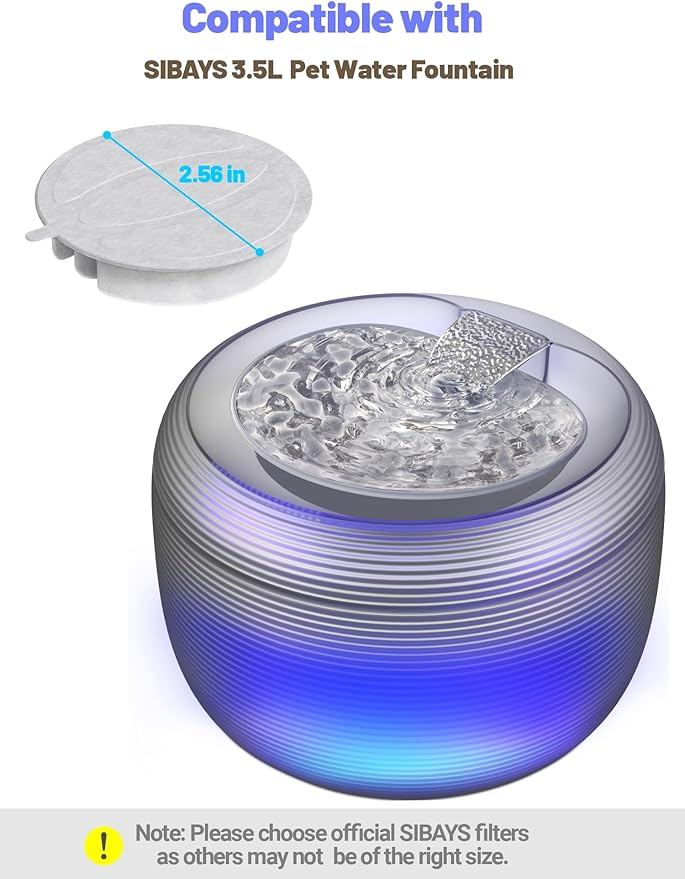 - Perfect Fit for SIBAYS 3.5L Pet Water Fountain: This pet water fountain filter replacement is compatiable with SIBAYS 118oz/3.5L cat water fountain, please confirm the compatibility before your purchasing.